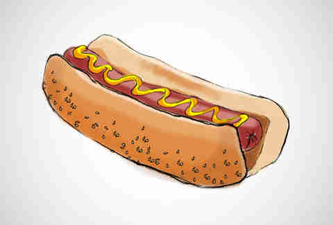 There are few things more American than this encased mish-mash of meats (a porky symbol of America’s melting pot?!) that can be grilled, boiled, microwaved, or even baked and served in beans, mixed into stews, or topped with kraut. But a basic dog, sandwiched between a sliced bun, with a squiggle of ketchup and mustard says Summertime, sprinklers, and obesity. It doesn’t get more American than that -- until you are reminded of that “mish-mash of meats” part.
